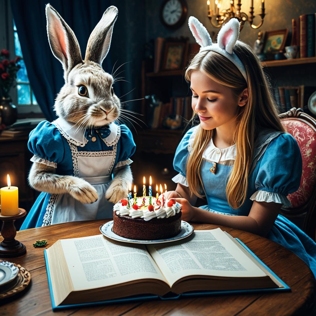 Children's book illustration of robots celebrating a birthday in a futuristic city. The scene is brightly lit, in 4K HD, trending on ArtStation with intricate detail and an epic composition inspired by Cri Film.