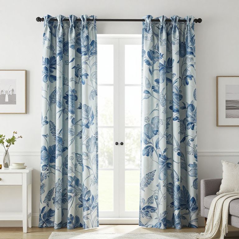 Laura Ashley Blue Living Room White Walls Floral Curtans With Accents In Them
