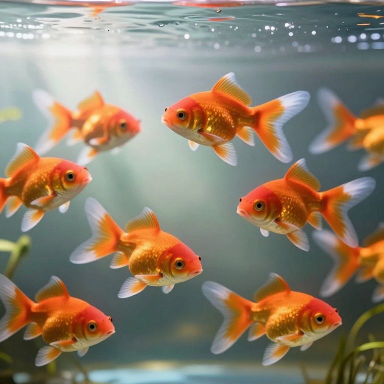 In a serene aquatic realm bathed in ethereal sunlight, a community of vibrant goldfish navigates the delicate balance between freedom and connection, their tiny spectacles symbolizing wisdom amidst the gentle hum of life's perpetual motion.