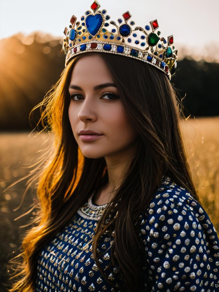 Girl Prince, a close up of a woman wearing a crown and a dress --sref 1393