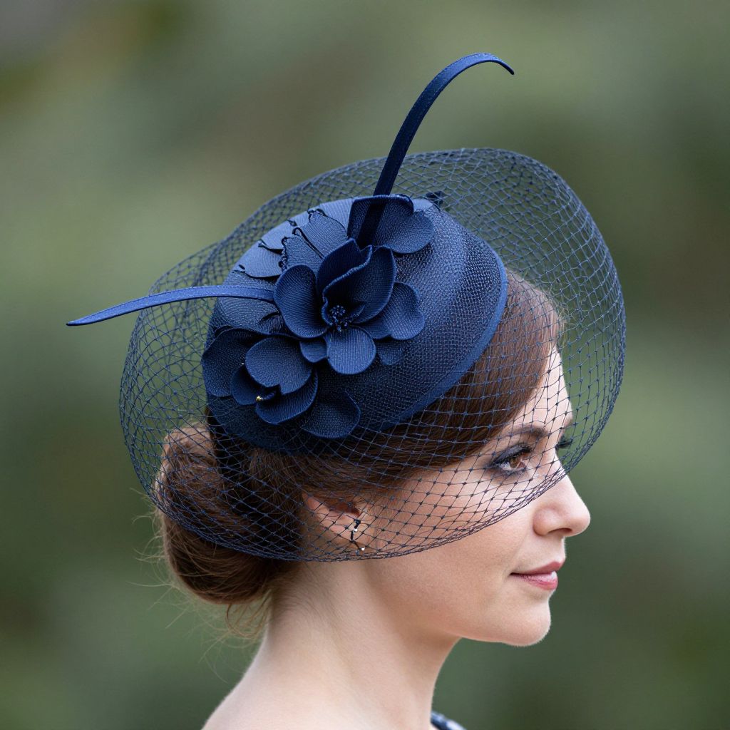 Elegant Navy Fascinator Hat with Veil
