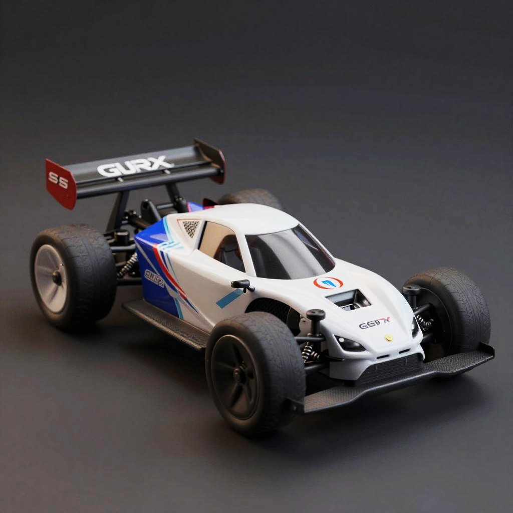 Realistic 8K rendering, (RC car:1.1), Simple studio background, Studio lighting for a cinematic look, Dynamic and photo-realistic, Capturing the RC car in real-life detail