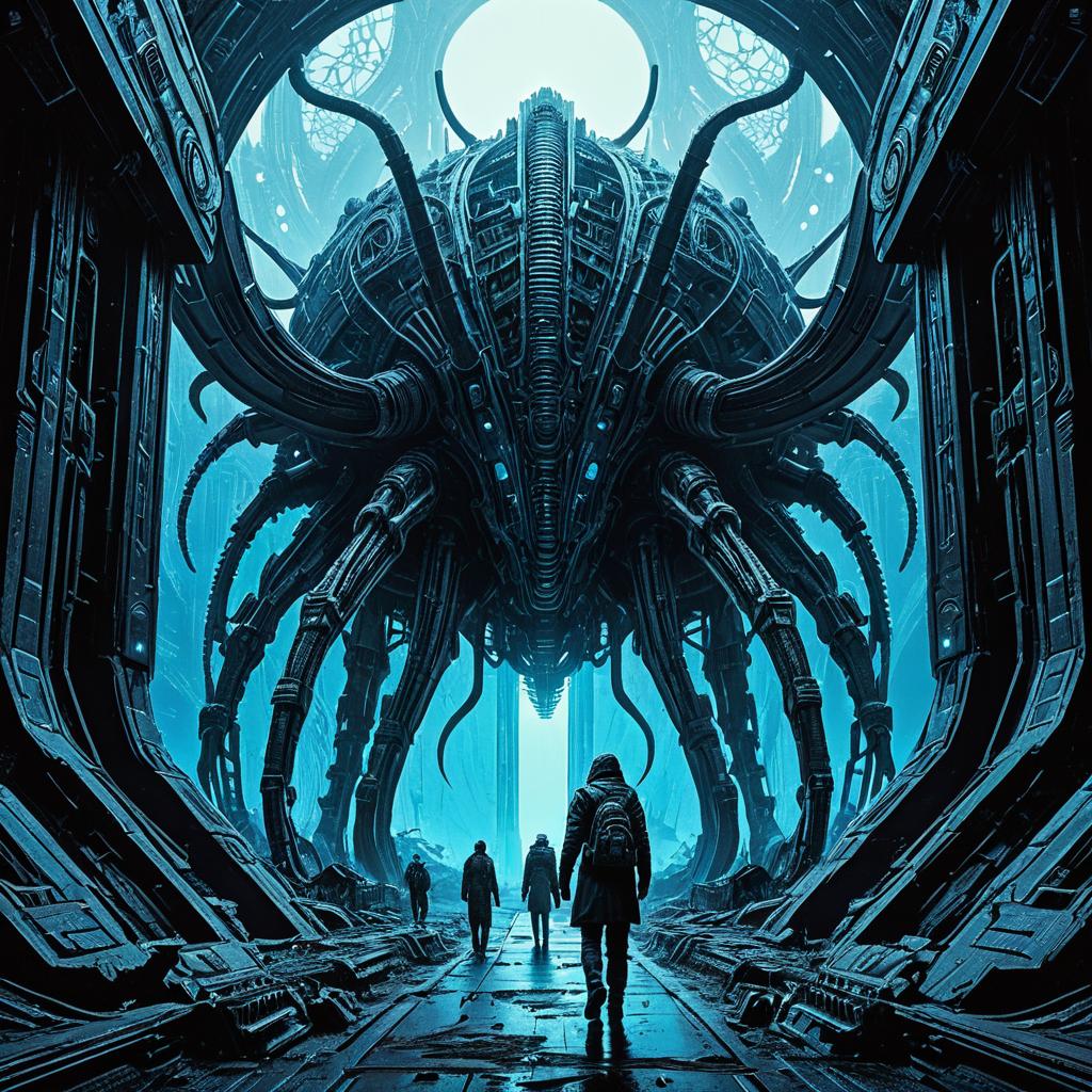 Pandemic fallout, hdr, volumetric lighting, depth of field, dystopian, hyperrealistic, annihilation of humankind, neo apocalypse, by syd mead hr giger moebius zdzislaw beksinski, very detailed, ornate, intricate, octane render, cold blue lighting, photorealistic