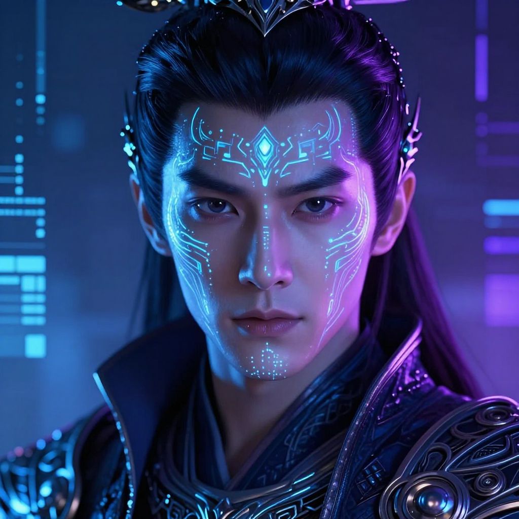 Enchanting scene: A serene male figure stands amidst lush foliage, surrounded by an otherworldly atmosphere, as a majestic dragonfly flutters nearby, its iridescent wings glistening under the soft glow of ethereal volumetric lighting, highlighting intricate details and delicate patterns, capturing the essence of wonder. Man has masculine face and piercing eyes