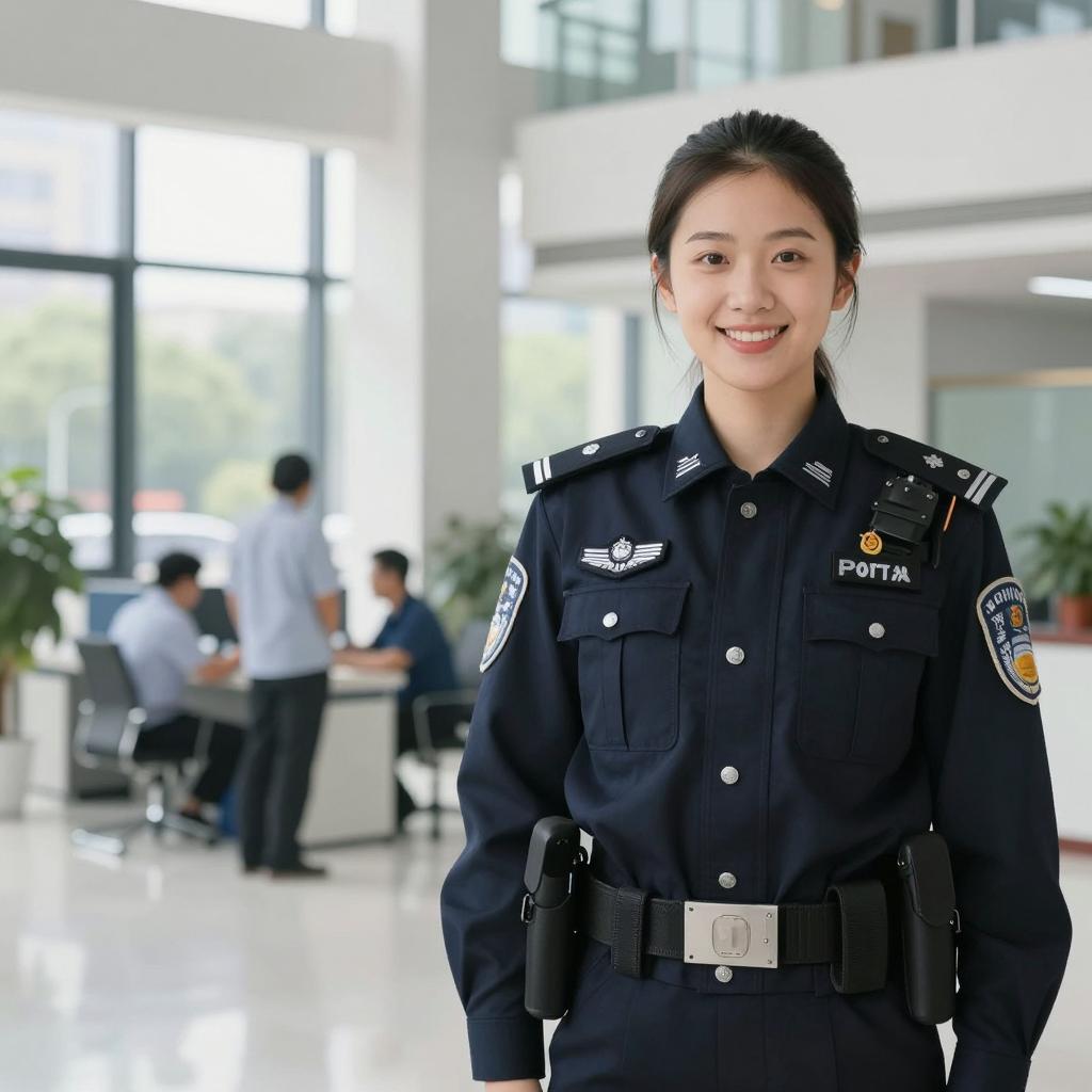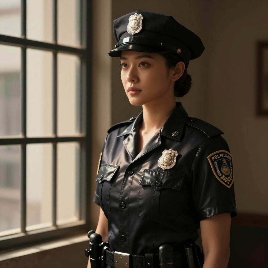 Realistic Policewoman by Chain-Link Fence