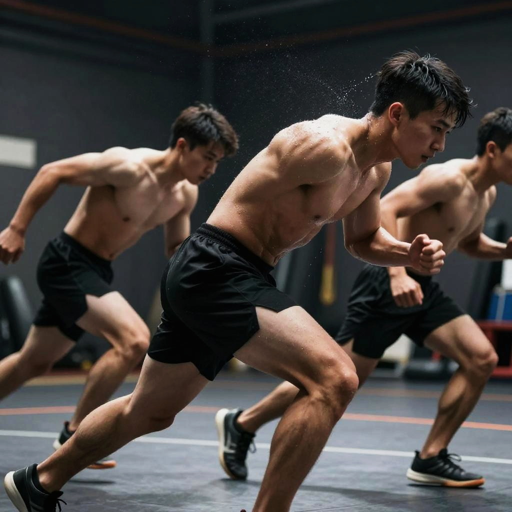 Male parkour athlete, athletic and flexible vaults over a concrete barrier in an urban cityscape playground during golden hour, dynamic pose and sharp focus on muscle definition, determined expression, soft diffused lighting, cinematic realism, shallow depth of field, sweat sheen on skin, balanced composition, clean background, natural skin tones, subtle film grain, vivid contrast, high resolution