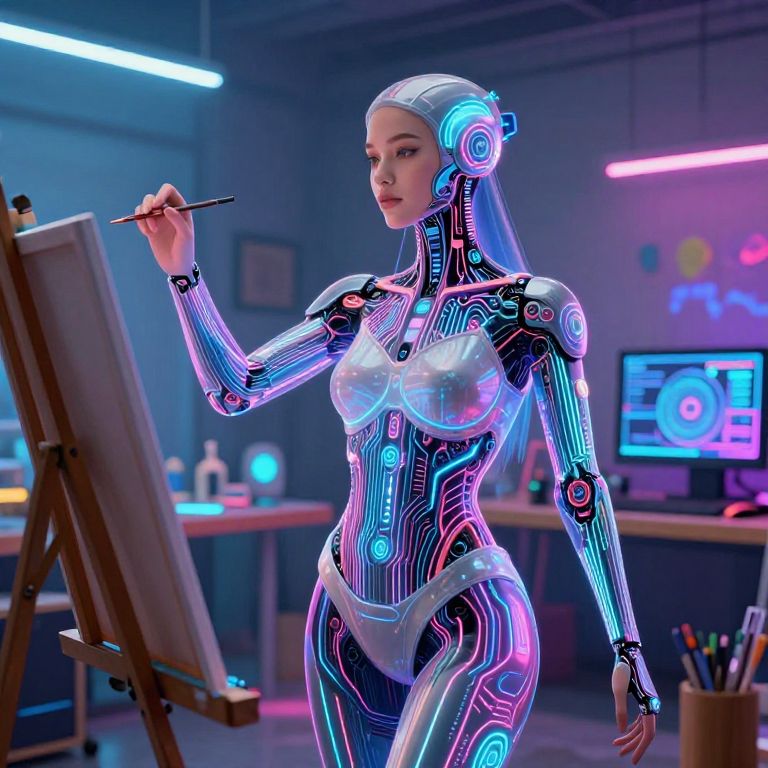 Cybernetic Muse Inspiring Futuristic Painter