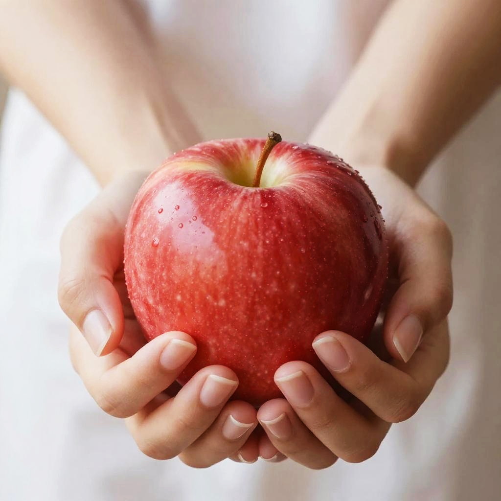 Hands Holding Shiny Red Apple