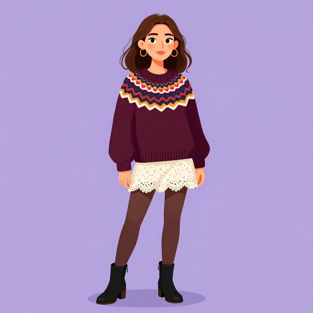 Stylish Woman in Chunky Knit and Pleated Skirt