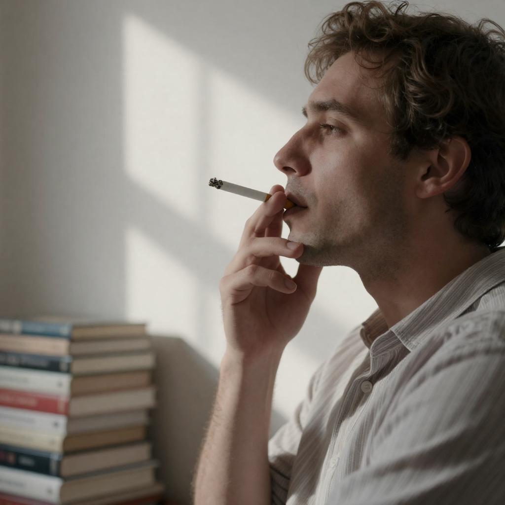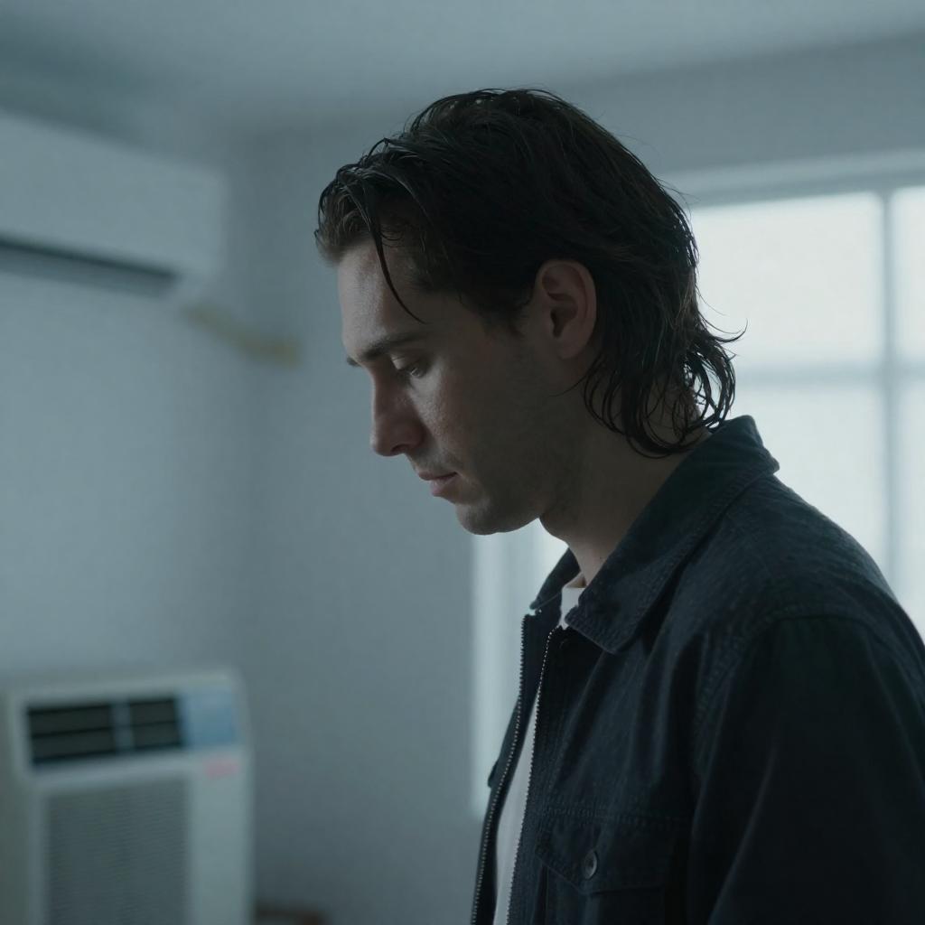 Contemplative Moment in a Bathroom