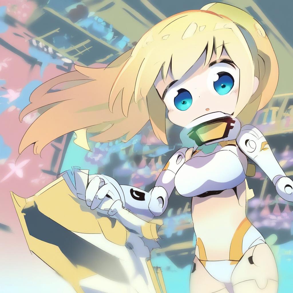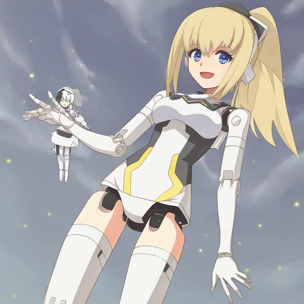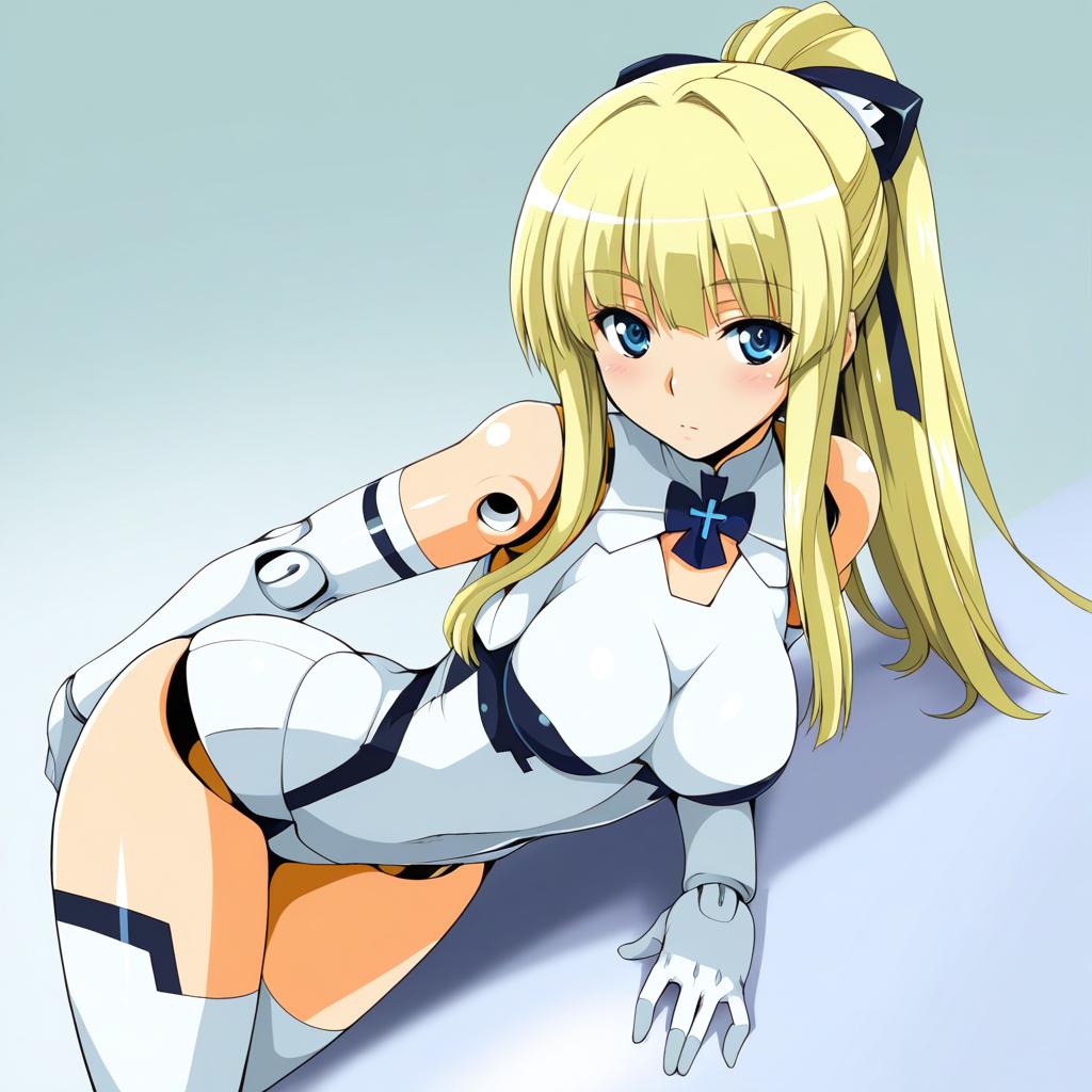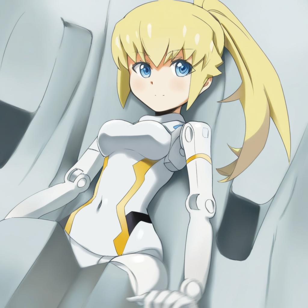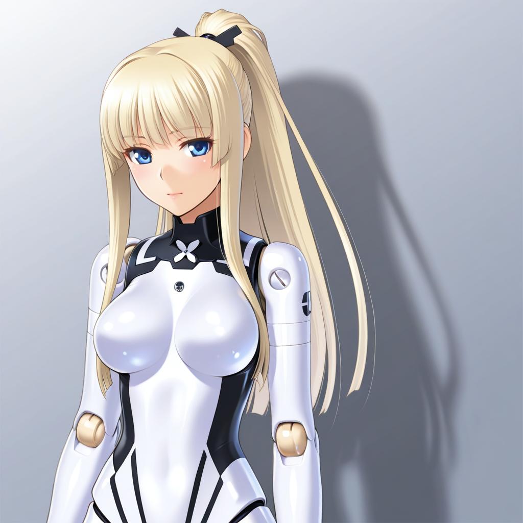 Arnval, busou shinki, 1girl, blue eyes, blonde hair, long hair, ponytail, medium breasts, doll joints, by artist mashuu (neko no oyashiro), leet