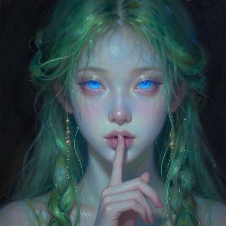Contrast Colors, Cinematographic Photography, Vivid Colors, Detailed Style Photography Hyperrealism oil painting portrait of a creepy yet beautiful mystical female creature, beautiful mystical female creature perfection style, vivid colors, colorful, dark background, FntsyPstlCE style, NewFantasyCore, ahx
