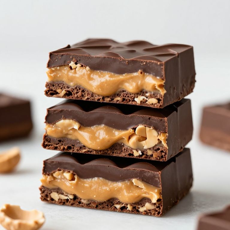 Stacked no-bake chocolate peanut butter bars showcase a luscious combination of smooth, golden peanut butter and rich, dark chocolate, creating a decadent treat that perfectly balances texture and flavor.