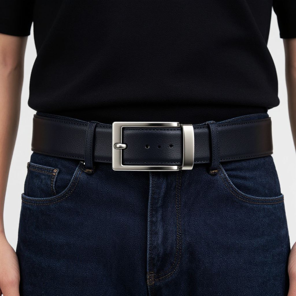 Statement belts for men, fashion accessories, slim fit, leather material, modern design, stylish men's belt, high-quality craftsmanship, tailored look, urban fashion, bold yet refined aesthetic