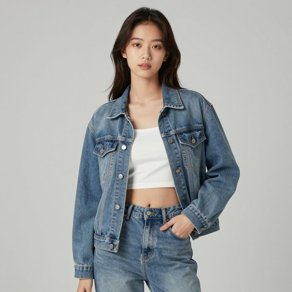 A confident young woman poses in edgy fashion, wearing a black mesh crop top layered over a black turtleneck paired with high-waisted black leather shorts. She accessorizes with gold layered necklaces and hoop earrings, standing next to a black motorcycle that adds a rebellious and stylish vibe to the image.