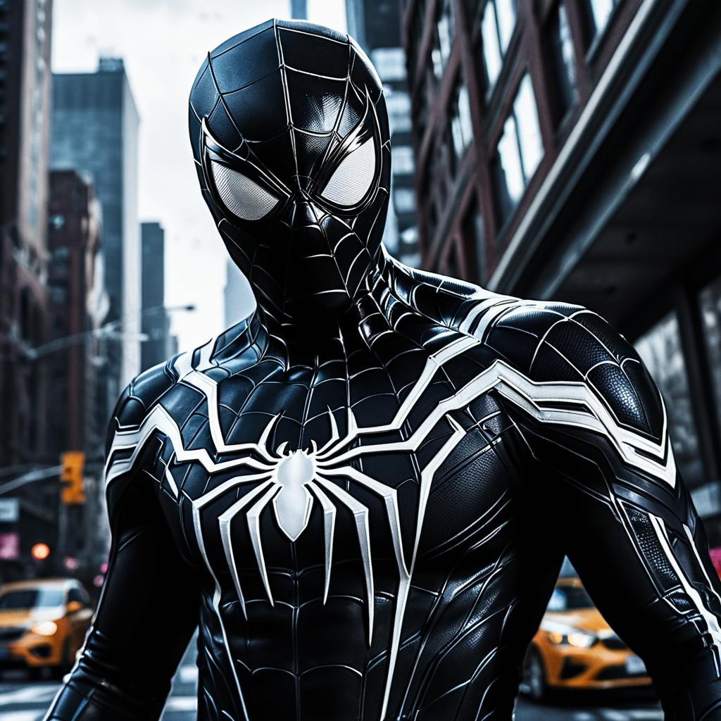 Tom Holland as Spider-Man wearing Venom symbiote suit, realistic artstyle, trending on artstation, macro, intricate, vibrant, digital painting, full portrait, hd, cinematic, dramatic, ultra detailed, illustration, concept art, dramatic background, unreal engine 5, 8 k, 4 k