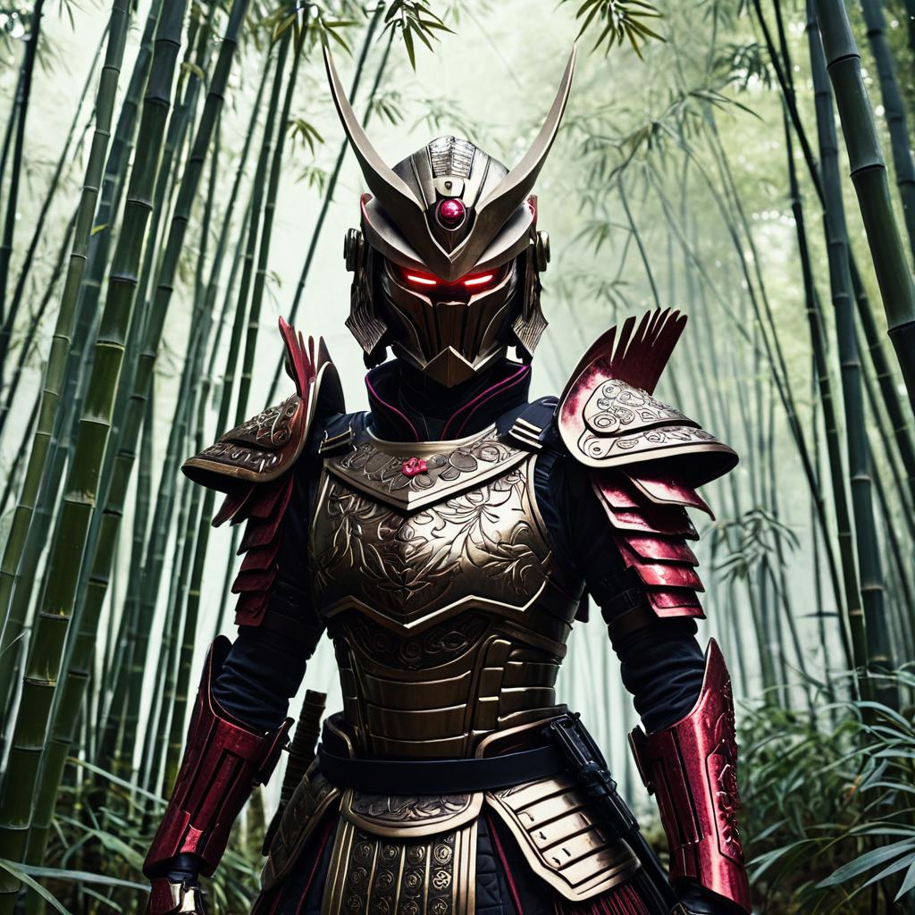 Cinematic Samurai Android in Bamboo Forest
