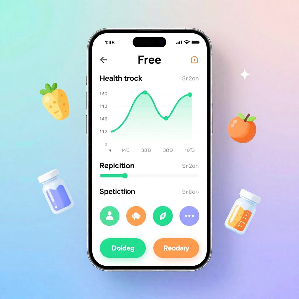 Skinny app free concept interface, sleek minimalist smartphone screen displaying health tracking charts, modern UI with vibrant colors, futuristic digital fitness and nutrition icons, user-friendly design, soft gradient background, detailed tech style