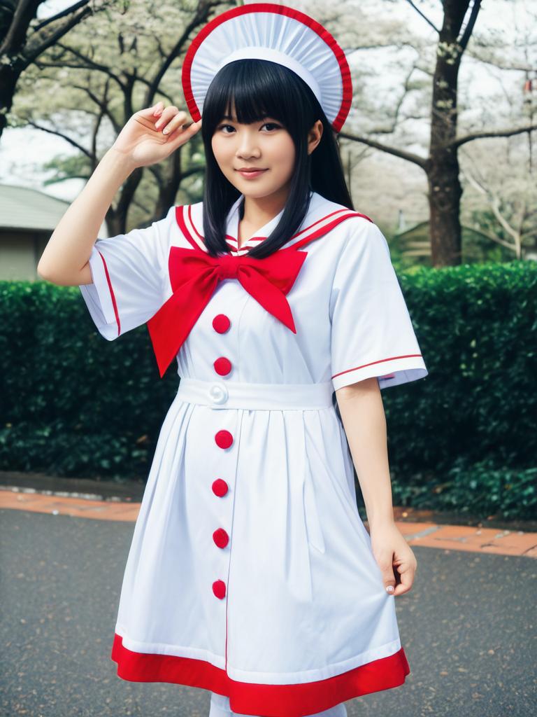 Woman cosplay. Wearing Misako (Kunio-kun) costume. Realistic photo. Dressed as Misako (Kunio-kun) --sref 1392