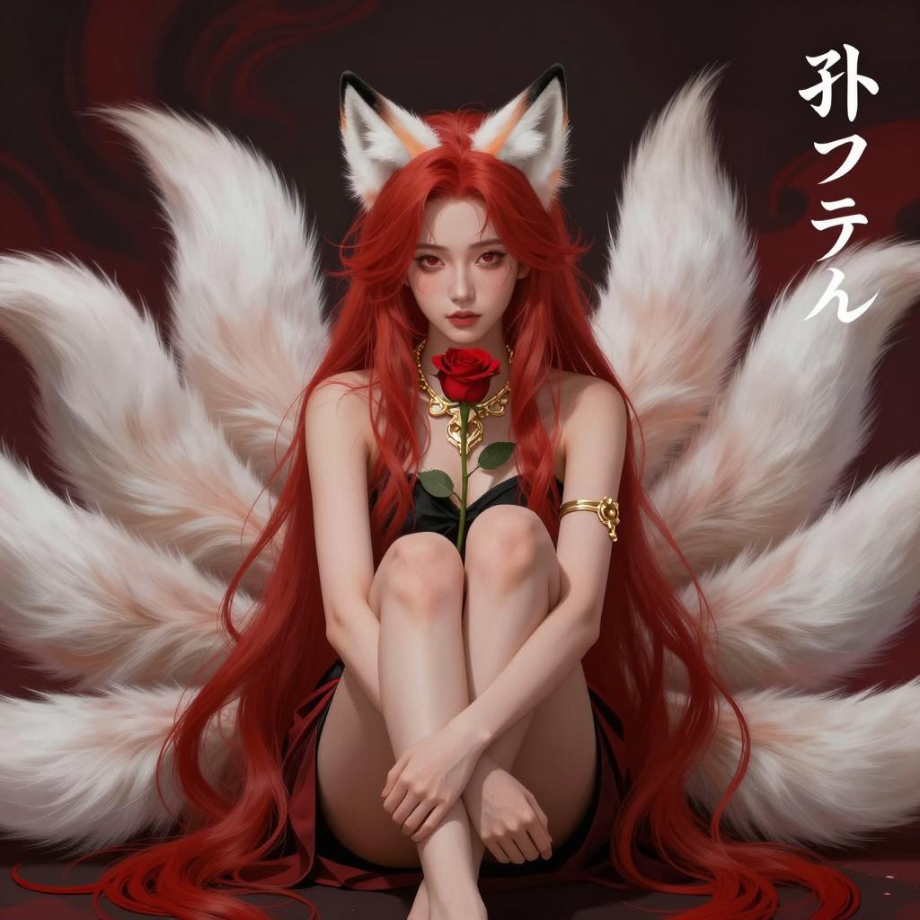 A hyperrealistic fantasy portrait of a cunning fox sorceress with vibrant orange hair and large fox ears. She wears detailed, ornate blue and gold clothing with mystical jewelry. The sorceress holds glowing magical orbs emitting blue and orange light, set against a dark, magical night background. The image is rendered with intricate detail and dynamic lighting in a comic book style.
