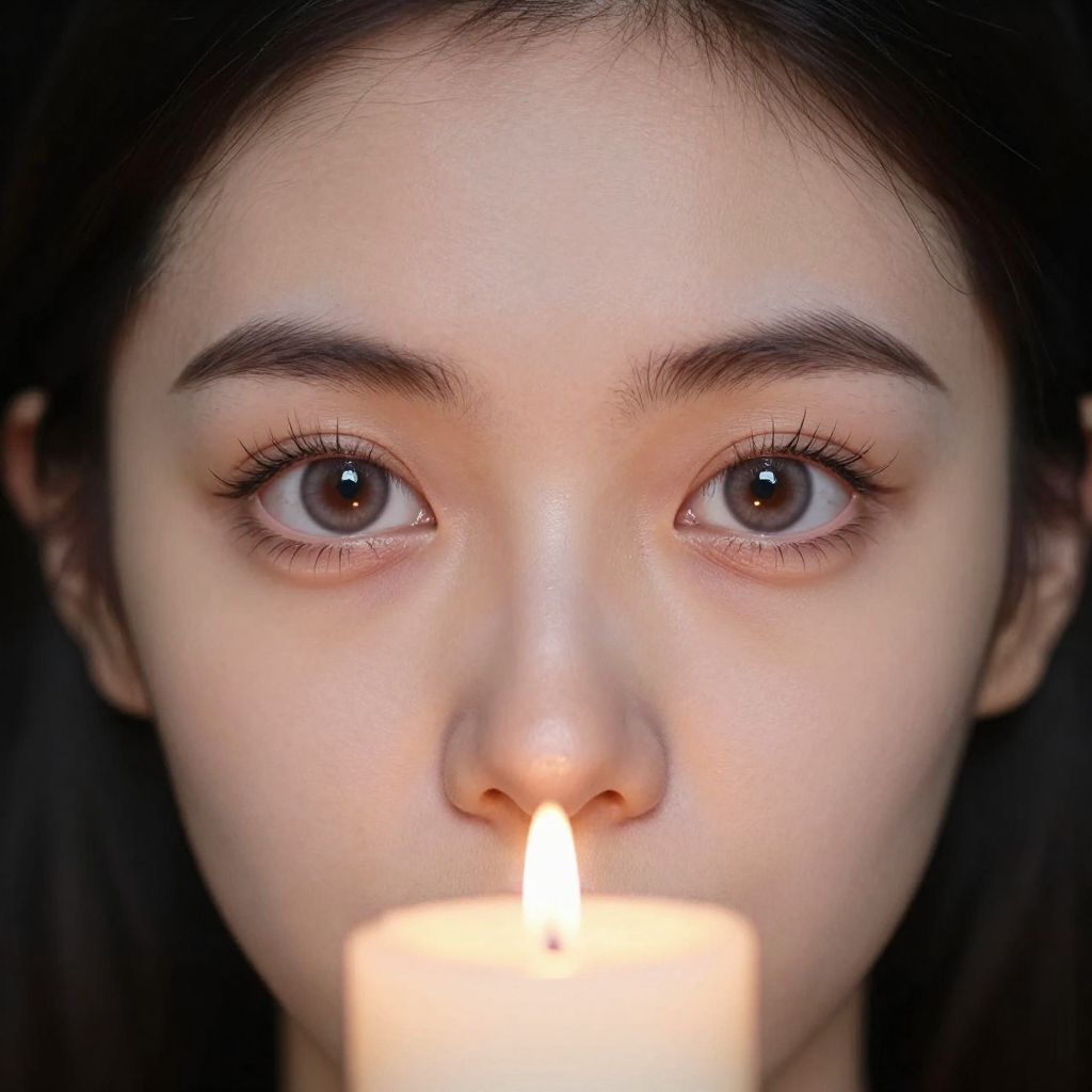 DEN_cherry_candle, ((headshot:1.1) portrait on a plain black background, (headshot:1.2), face focus, intricate (beautiful eyes:1.2), (wide open eyes:1.1), Big eyes, clean photo, circle lighting, high contrast:1.2), bokeh, f1.4, 40mm, photorealistic, raw, 8k, textured skin, skin pores, epiCRealism