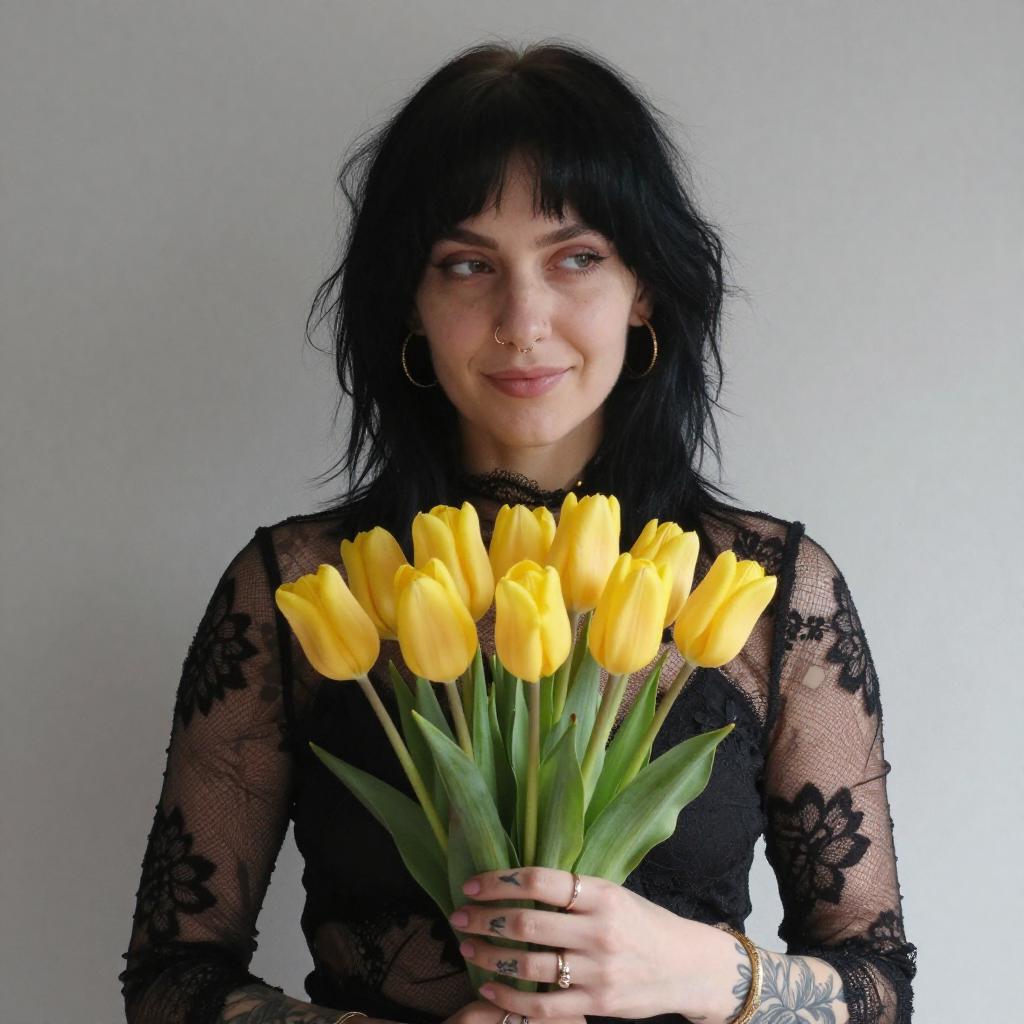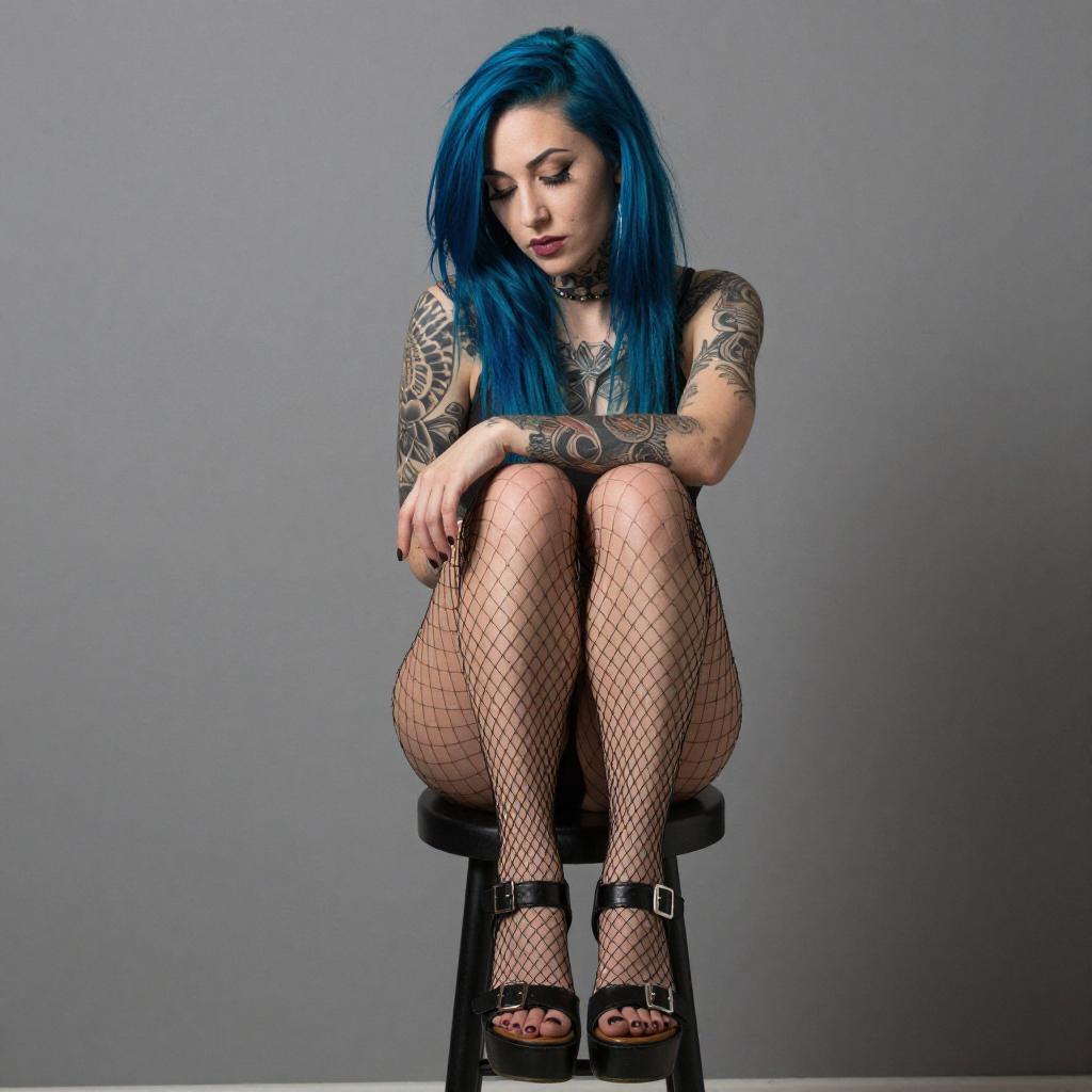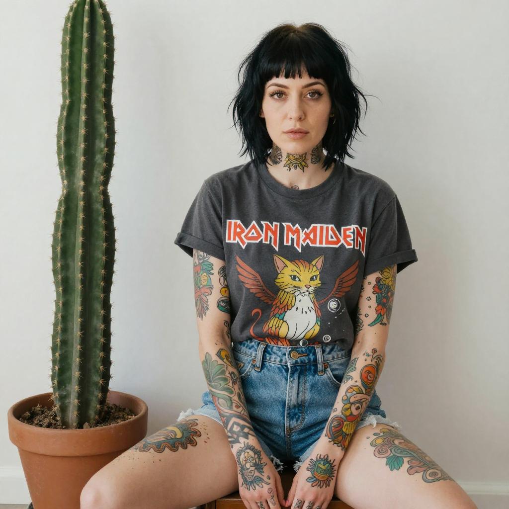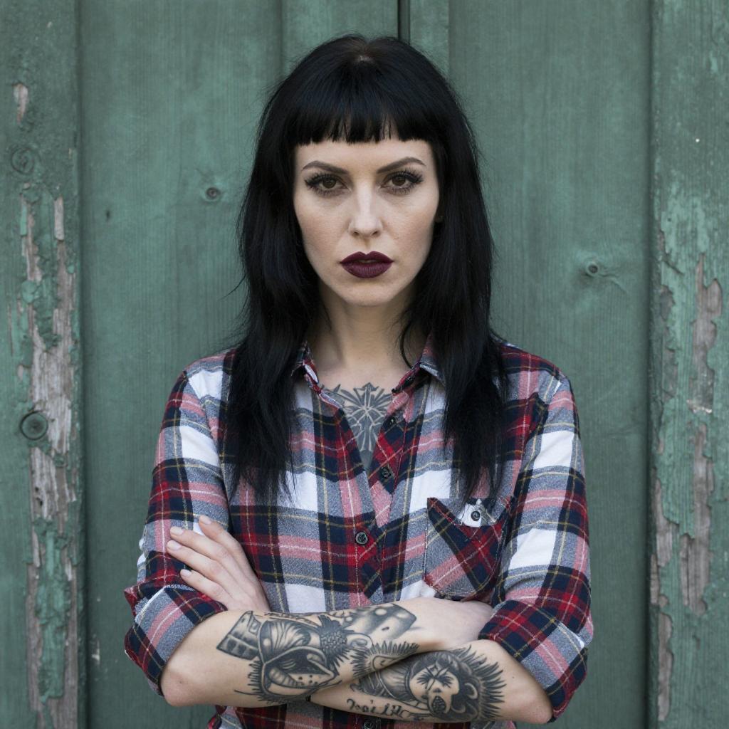 Smiling Woman with Tattoos and Checkered Shirt