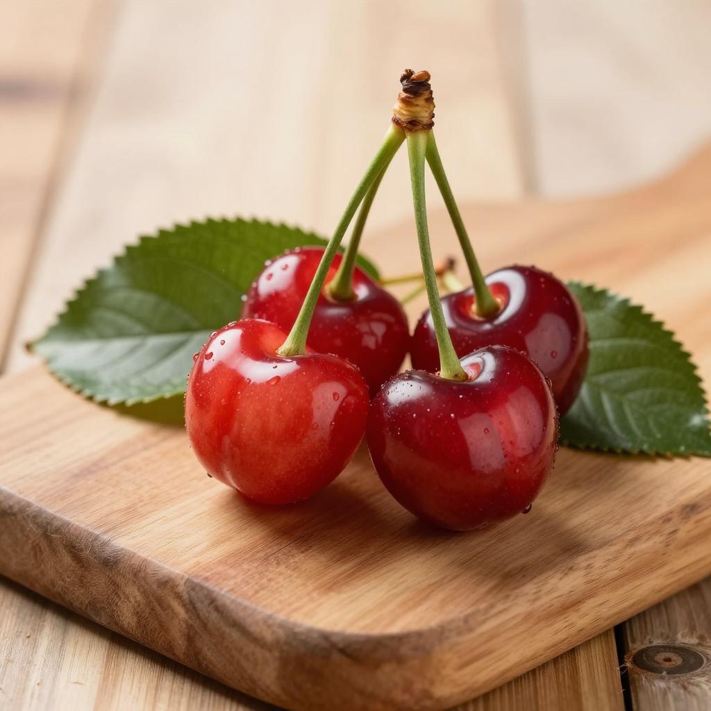 Fresh Red Cherries on Wooden Cutting Board