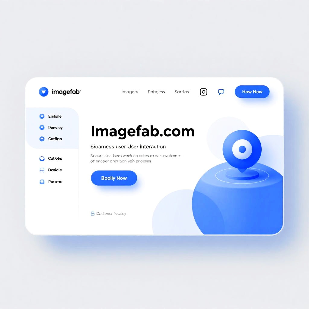 Imagefab.com innovative web platform interface, seamless user interaction, minimalistic and elegant UI design, bright corporate colors, smooth gradients, futuristic tech vibe, inviting and professional atmosphere, 3D render style