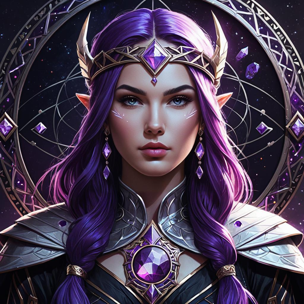 Hyper-detailed, stunningly beautiful female angel made of iridescent metals and shiny gems. She has wavy silver hair, a halo made of fragments of luminous crystals, and majestic feathered wings intertwined with golden filigree inspired by Artgerm and Ross Tran. Styled as concept art with intricate, bloody detailing, photorealistic quality, rendered in 9K with Unreal Engine. Perfect for D&D digital art, inspired by Artgerm.