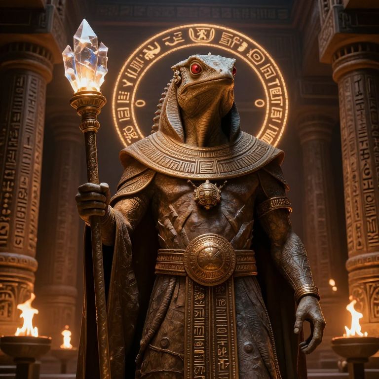 Ancient Reptoid Priest in Mystical Temple