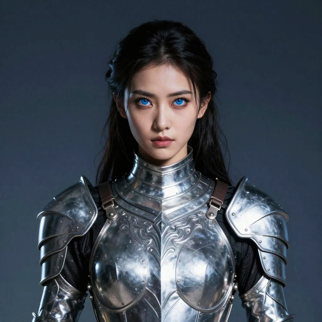 Enchantress with captivating sapphire gaze in an AI-controlled world, simulating medieval Japan, ultra-fine digital painting, ornate medieval velvet cloak and intricate details