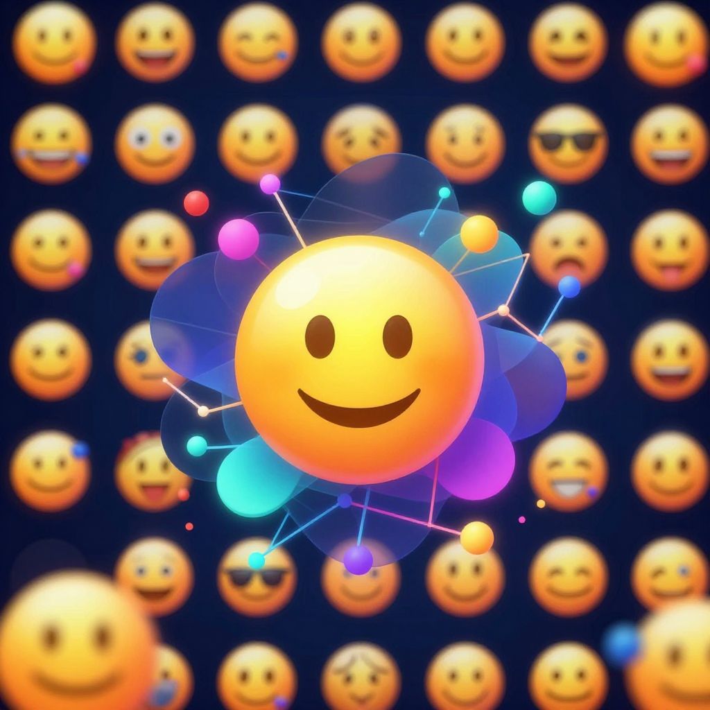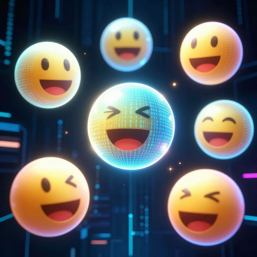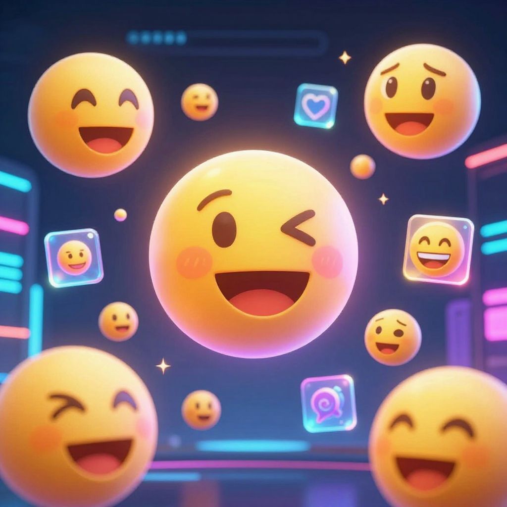 AI emojis futuristic icons, diverse range of emotions with pixelated and vector art style, combined with abstract AI neural network visuals, vibrant color gradients, floating in cyberspace environment, sleek and modern digital illustration