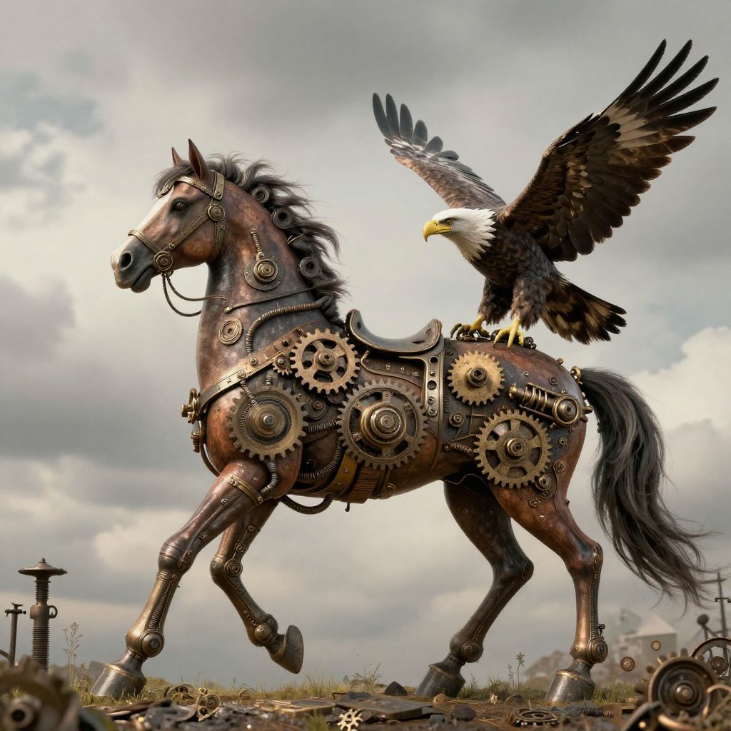 Steampunk Horse-Eagle Mechanical Hybrid