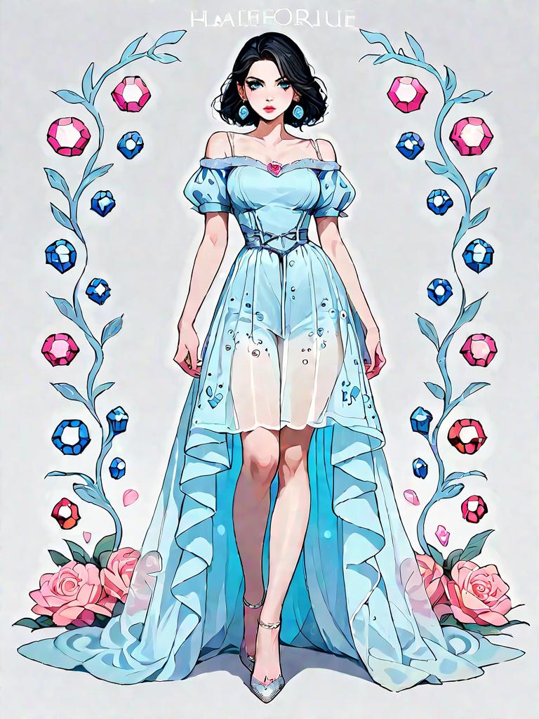 1girl, source_comics, realistic face, full body shot, Woman, romantic glamour, off-the-shoulder A-line dress in dusty rose, sheer overlay with intricate beaded detailing, sweetheart neckline with a transparent mesh insert, short sleeves with bead-encrusted edges, fitted bodice with visible boning, flowing floor-length skirt, drop earrings with gemstones, subtle makeup with a focus on soft pink lips, studio background