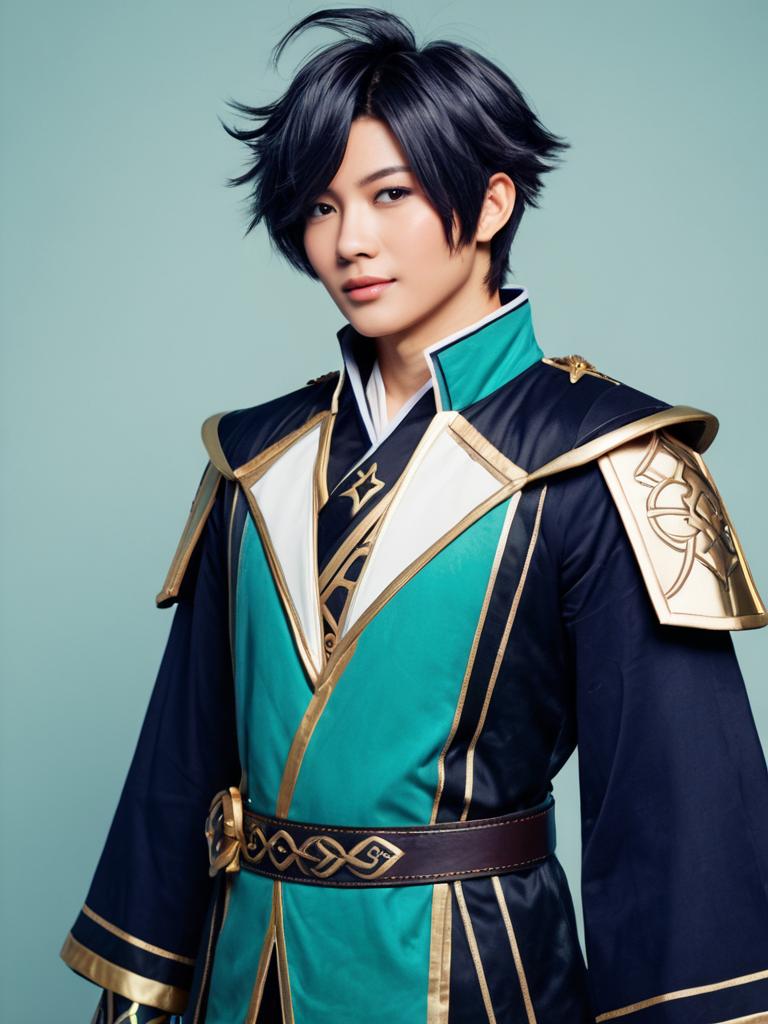 Man in Childe Genshin Costume, photorealistic detailed studio portrait --sref 1387