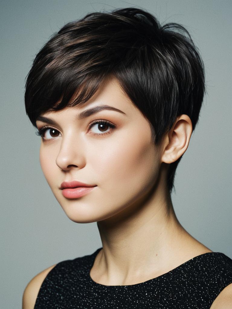 Woman in Pixie Cut hairstyle costume, professional studio headshot, sharp detail
