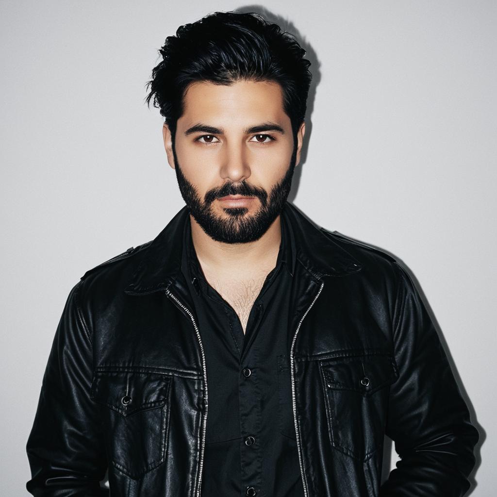 Portrait of a bearded man with brown hair wearing a brown coat over a dark blue shirt outdoors in a park during autumn. The background features trees with fall foliage and fallen leaves on the grass.
