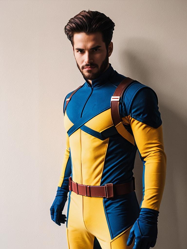 Man cosplay. Wearing Michelangelo (Rise) costume. Realistic photo. Dressed as Michelangelo (Rise) --sref 1392