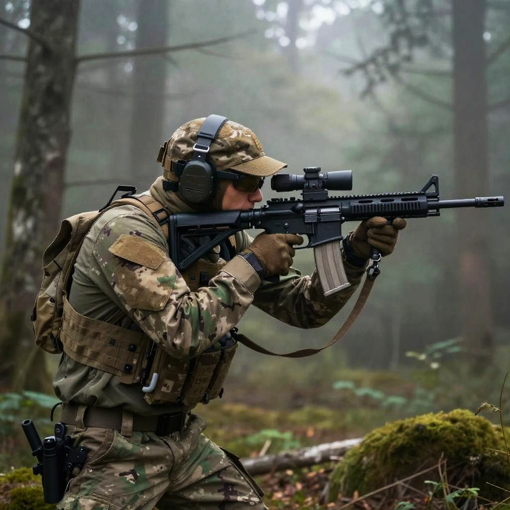 Siege female operators in camouflage, stealth infiltration in dense forest, low light environment, intricate gear details, moody atmosphere, photorealistic rendering