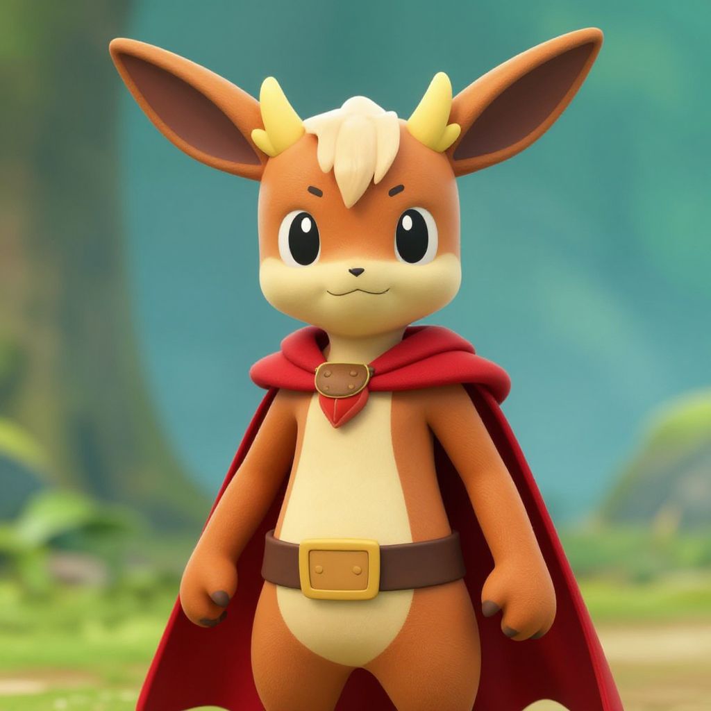 Sprigatito costume, solo, male focus, 1boy, colored skin, horns, looking at viewer, belt, red cape, closed mouth