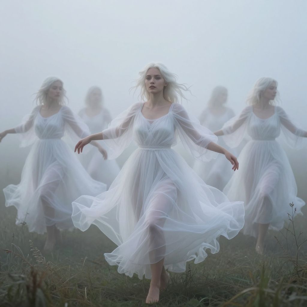((( FOG ON THE GROUND ))), Female characters design(made of mist:1.8), full body focus, Christina, clothes ( made of heavy white mist:1.8), soft shading, beautiful highly detailed face, fairies, group of females, White hair (smoke of mist:1.8), medium breasts, normal thick body, mist white dress (made of mist:1.8), ((WHITE sheer clear fog dress)), (((dancing in a sea of radiation fog:1.8))), ((Misty morning)), ((Foggy morning)), in a foggy meadow(made of mist:1.8), blur (made of thick fog:1.8), light fantasy, norse mythology, clothes (made of very light white mist:1.7), feminine facial detail, hyperfine maximalist eye detail, intense photorealistic eyes, symetrical eyes, finely detailed