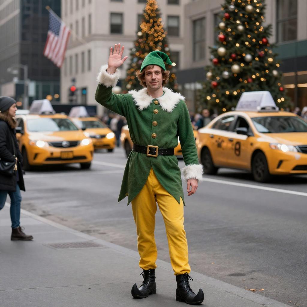 Waving Man in Green Elf Costume