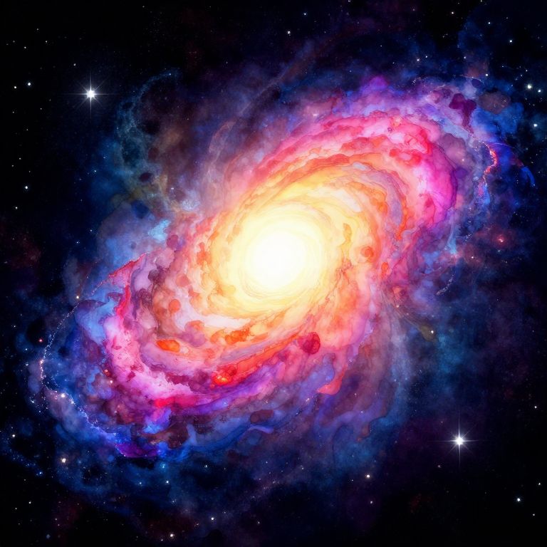 Tracking futuristic abstrac galaxy style colorful bright intensive colors watercolor style design on dark background,