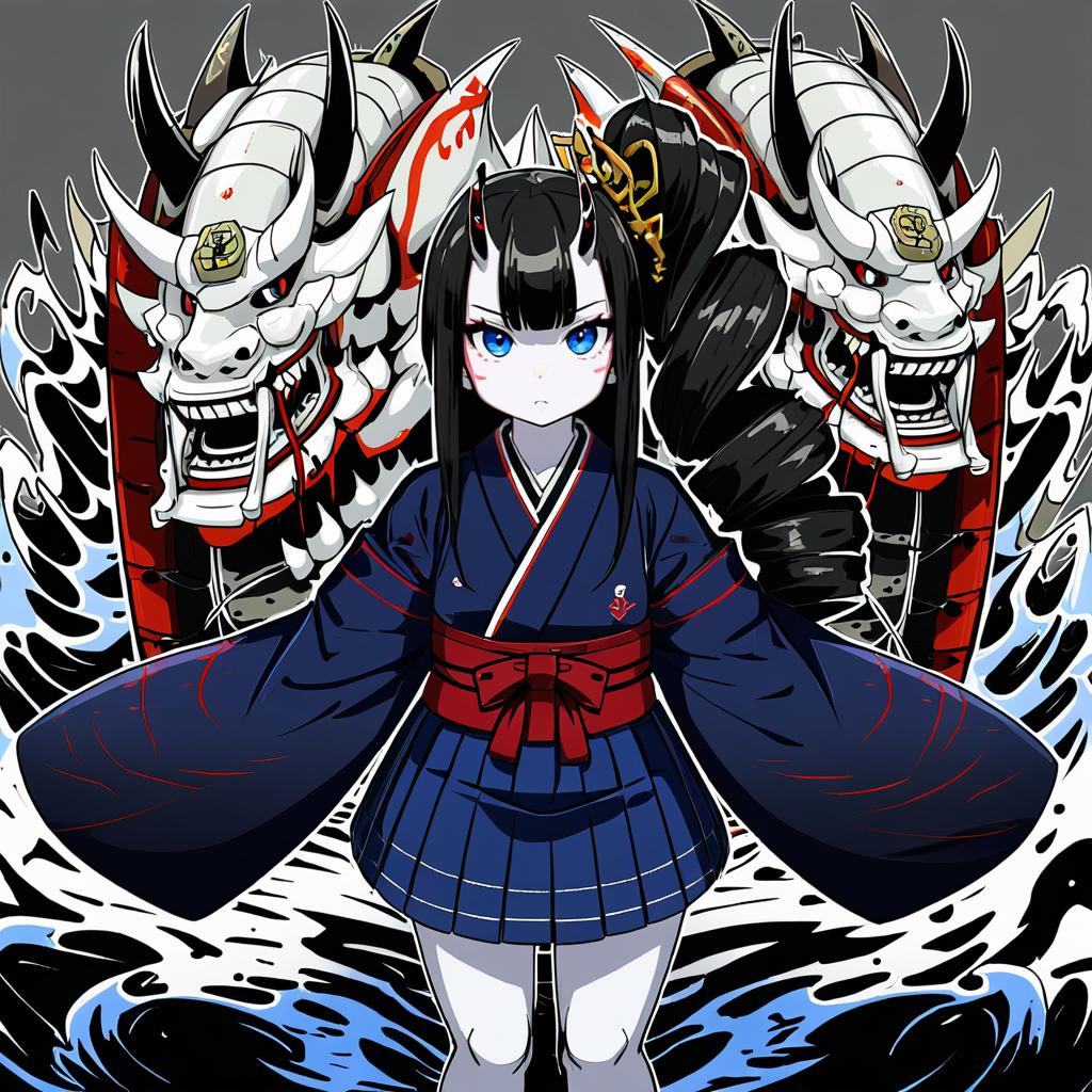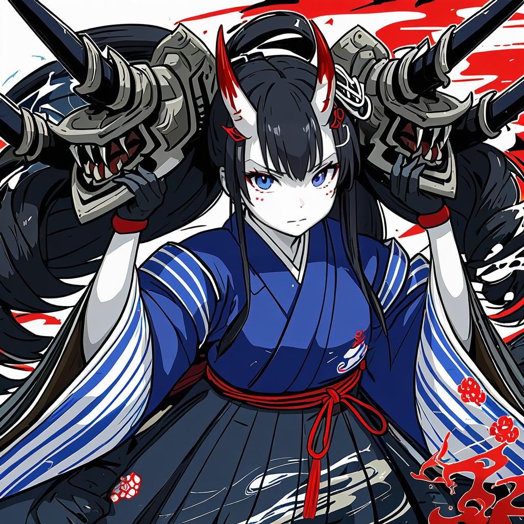 Illustration of Ancient destroyer oni, kantai collection in the style of Kink (tortoiseshell)