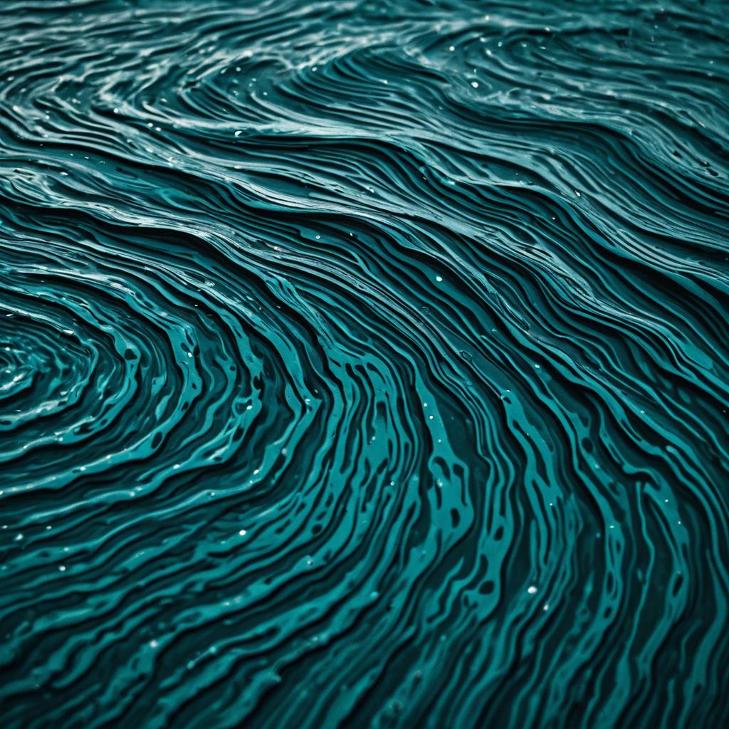 Abstract digital painting featuring intense emotional illustration of heartbreak conveyed through deep teal rippling liquid patterns. The high-quality artwork showcases intricate swirling textures and fluid motion, evoking deep and intense emotions.