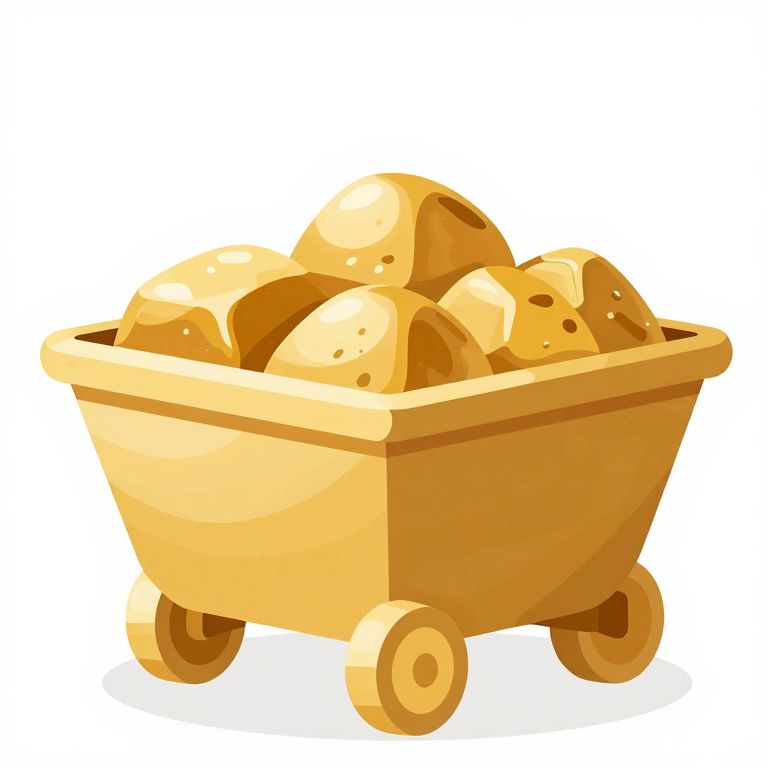 A vector illustration of a gold mine cart filled with large gold nuggets.