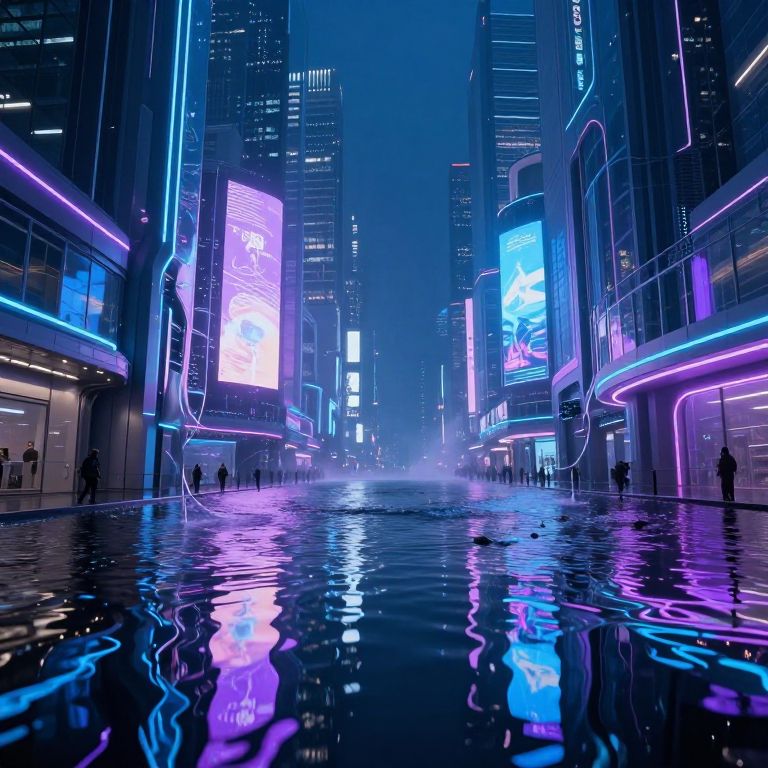 Futuristic Bridge Over Glowing Data River