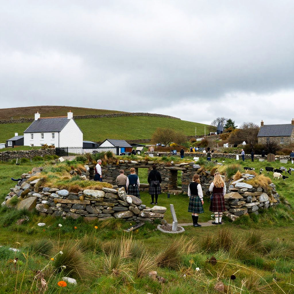 The Mont Saint-Michel in a serene landscape before modern tourism, with local visitors in traditional Medieval French, peaceful and historic atmosphere