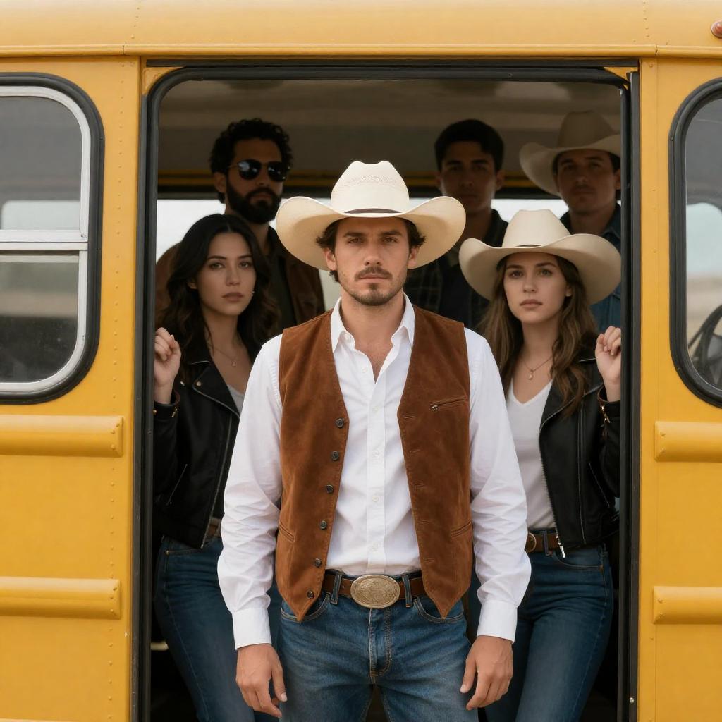 Serious Cowboy Leader by Yellow Bus