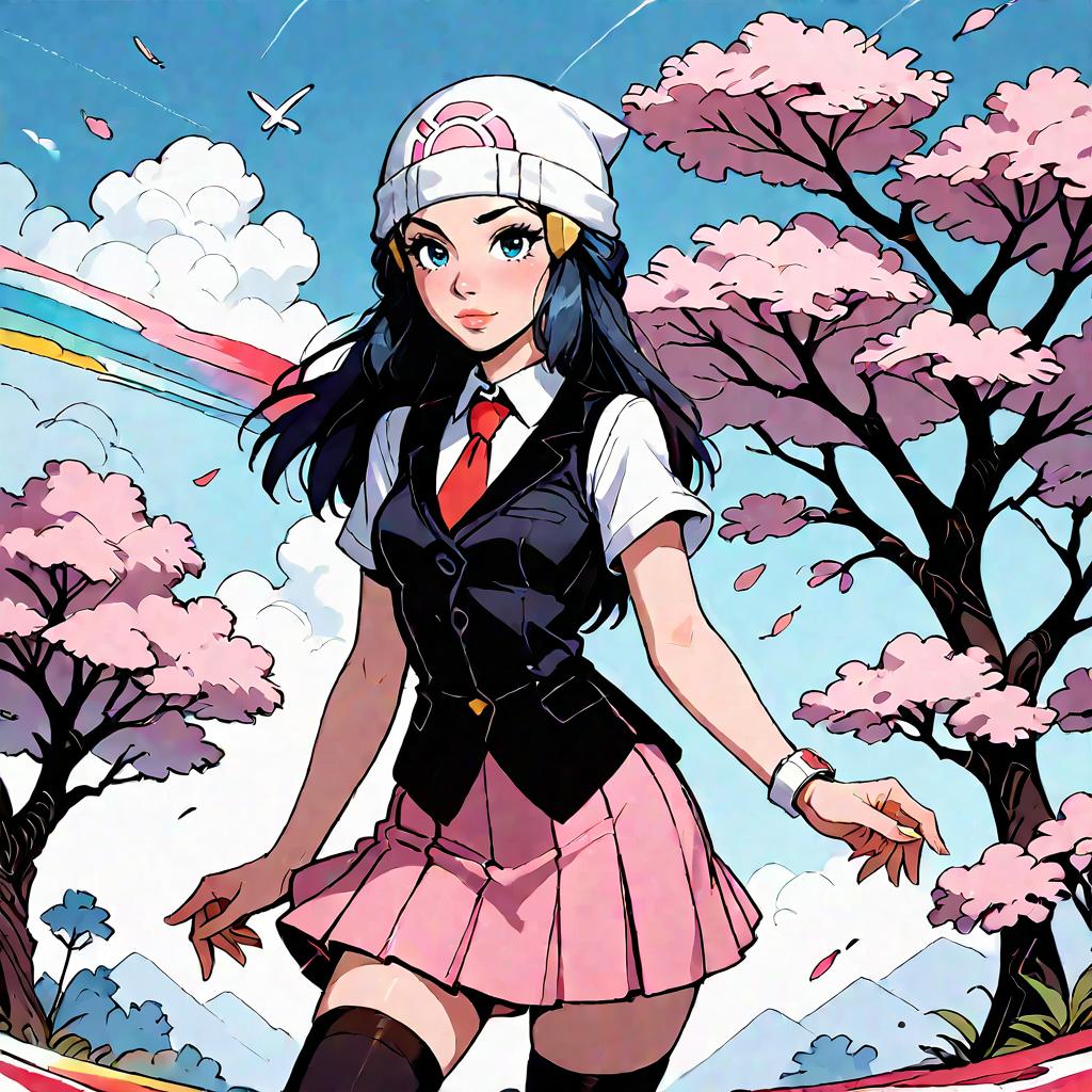 Score_9, score_8_up, score_7_up, score_6_up, score_5_up, score_4_up, a girl is writting in the drawing tablet, (dawn from pokemon:0.8), black vest, black thighhighs, red necktie, red skirt, pleated skirt